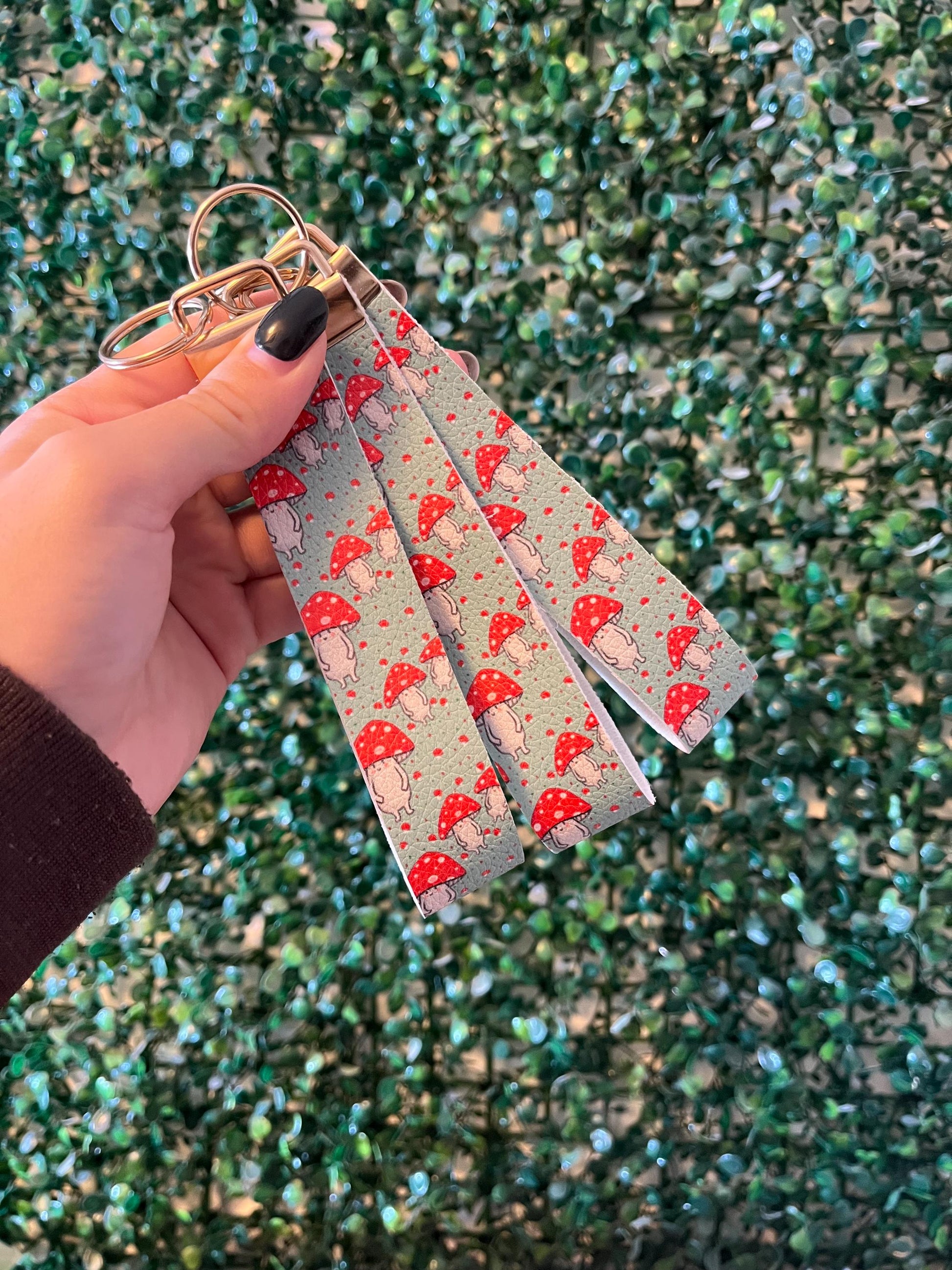 Autumnal mushroom toadstool character faux leather keyring wristlet car key keychain.