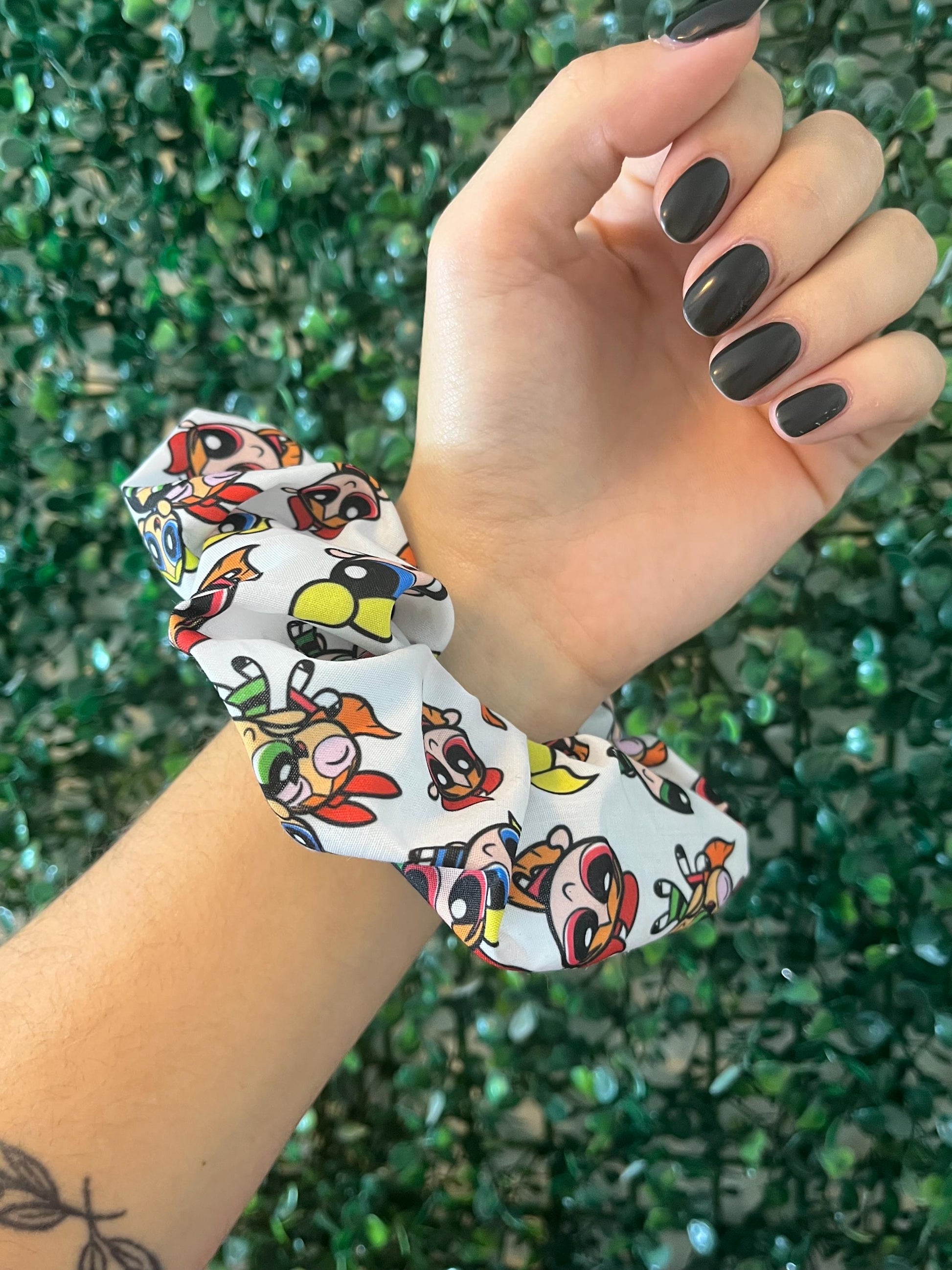 Handmade colourful girls power scrunchie hair tie elastic for thick hair.