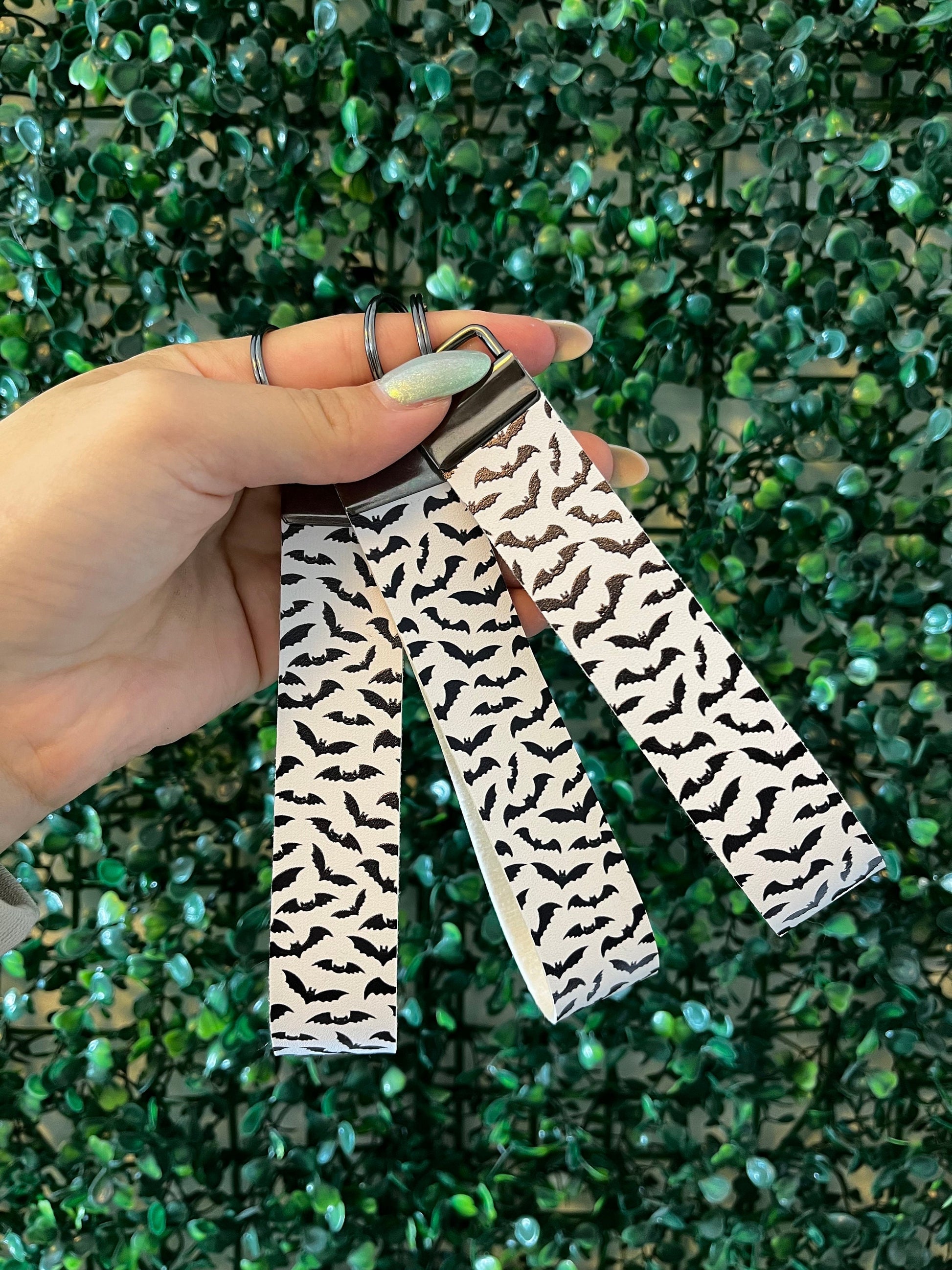 Spooky Halloween black and white bat wristlet keyring car key keychain.